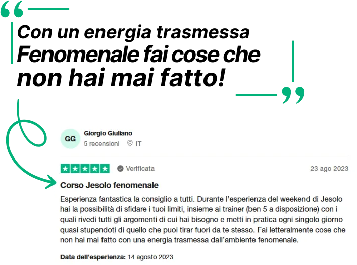 ➡️ 2 Giorni per un cambiamento rapido e intensivo – Perfetto per chi vuole sbloccare le sue capacità di comunicazione e conoscenza dal vivo in poco tempo, grazie a strategie testate sul campo.